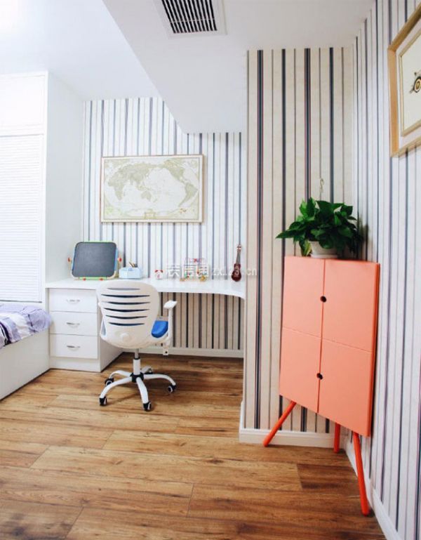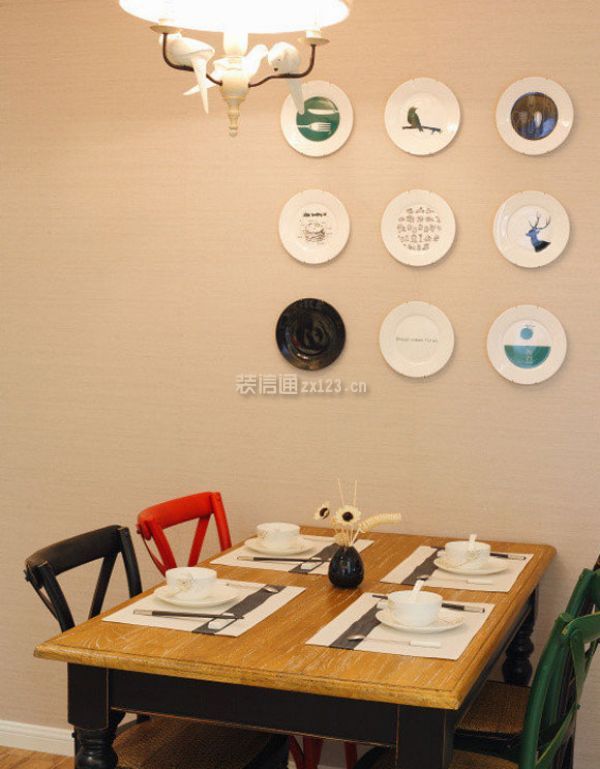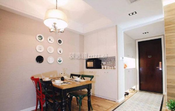 儿童房的面积很是不错,地面铺上带图案的瓷砖,配上四把黑色加红色的餐椅,简练风雅也愈加的适用。石材桌面的餐桌,粉饰结果和适用性都不错。家拆拆修气概。白色或黑色的盘子粉饰结果出格有个性。餐桌上方安拆了一盏外不雅十分标致的吊灯来粉饰!温州店面拆修设想,![]()